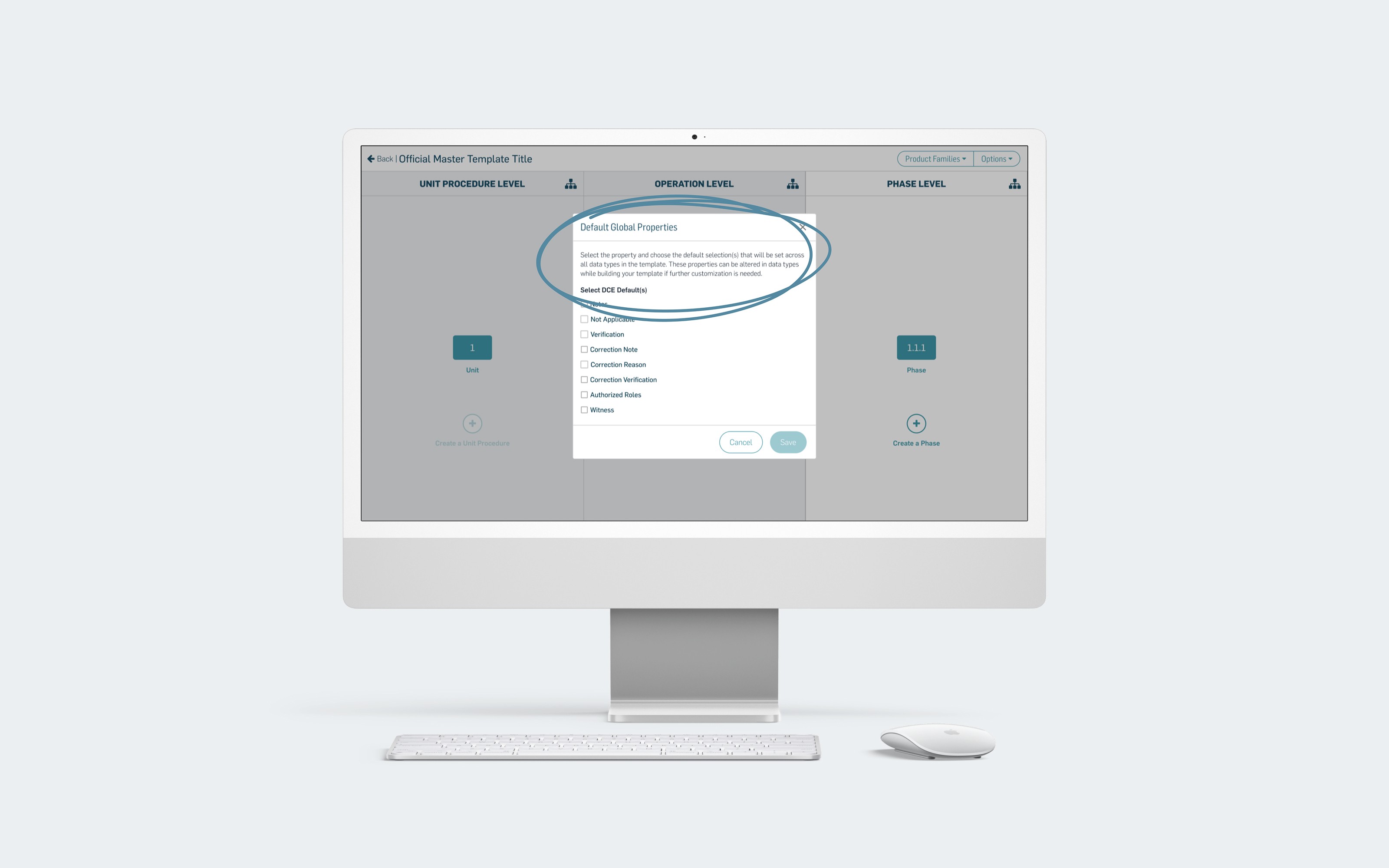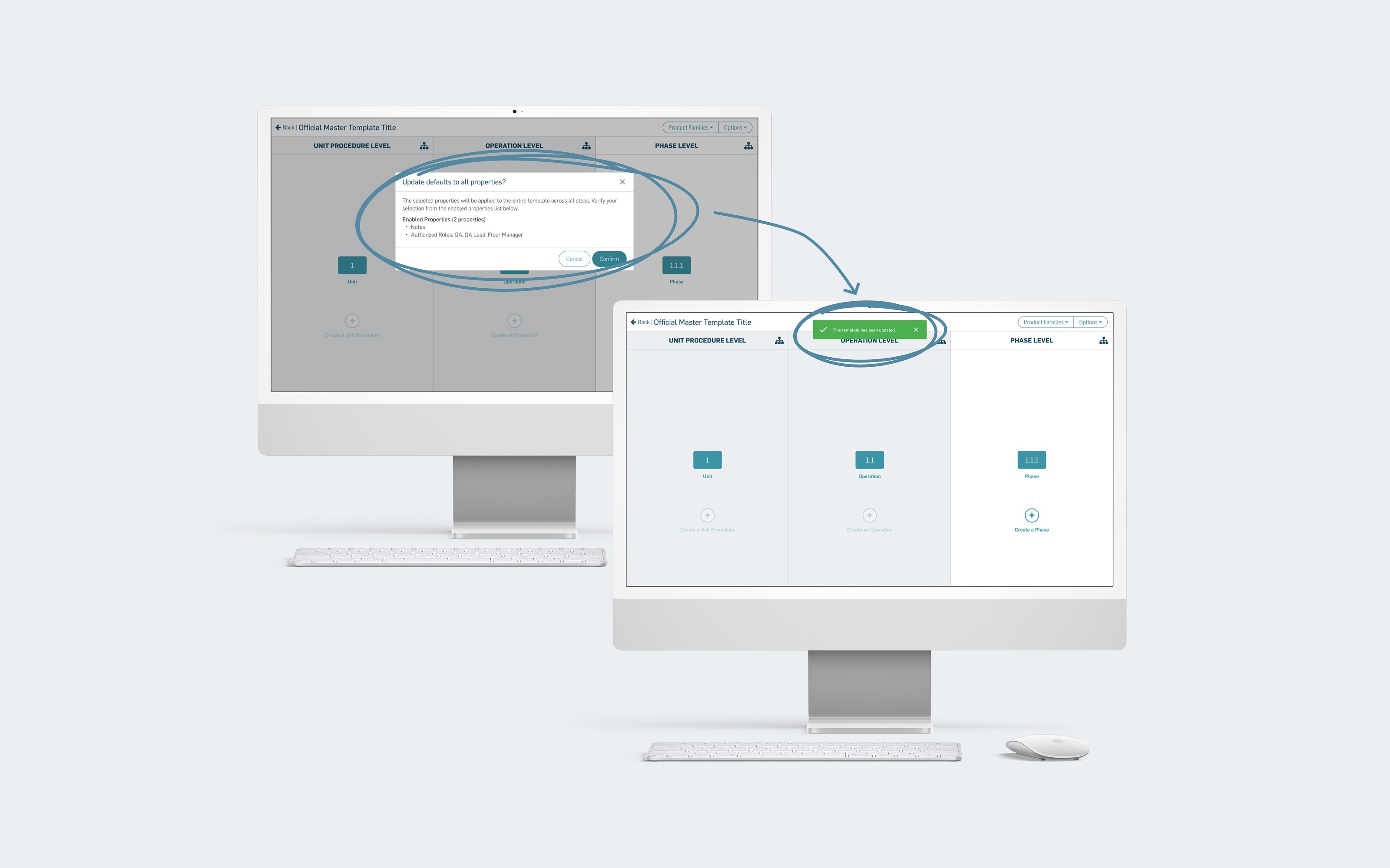 Updating and setting default properties in master templates required a repetitive, multi-step process that was time-consuming and error-prone. In regulated manufacturing environments, this created delays of several days when teams needed to add or update correction reasons—impacting productivity, accuracy, and customer confidence.