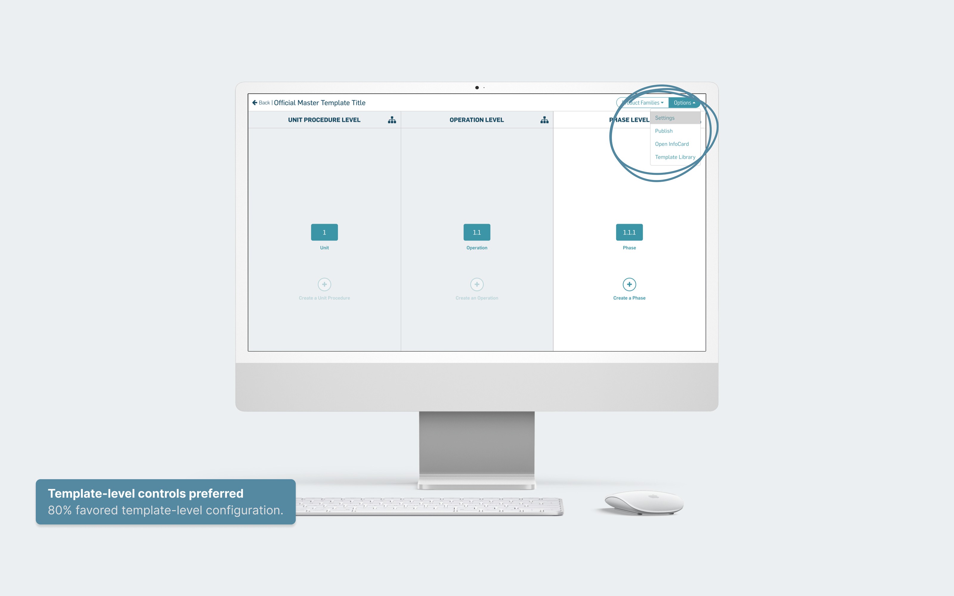 I introduced a streamlined configuration experience that supports template-level property controls and clearer default-setting behavior, reducing repetitive manual steps and minimizing opportunities for error. The feature was placed early in the template-building journey to reduce downstream rework.